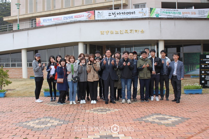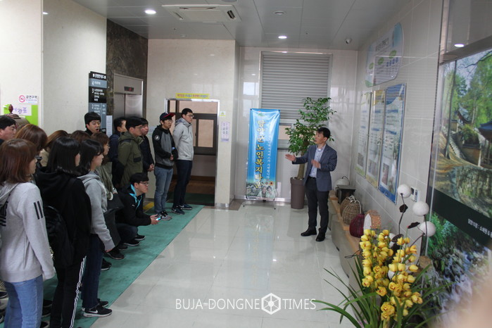 전라남도 공무원교육원 신규공무원 교육생 22명은 지난 29일(수), 교육의 일환으로 노인복합시설 담양군복지타운(원장 이동오)을 방문하여 시설 견학과 어르신과 소통하는 봉사활동을 펼쳤다.