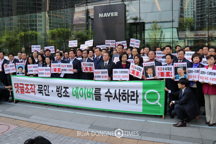 존경하는 국민 여러분, 포털이 포탈이 되었다. 이 네이버는 문재인 정권과 손잡고 댓글조작과 공작에 묵인·방조한 그런 포털이다. 더 이상 이 거대권력 포털 네이버를 그냥 방치해서는 안 된다. 자유한국당이 거대권력 정권과 유착한 네이버를 반드시 응징하고 심판하겠다.
