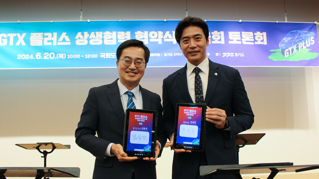지난 20일 한준호 의원이 국회도서관에서 공동주최한 GTX플러스 상생협력 협약식에는 김동연 경기도지사와 이학영 국회부의장, 박정 예산결산특별위원회 위원장, 맹성규 국토교통위원장을 비롯해 GTX플러스 노선이 경유하는 지역의 지자체장과 국회의원, 전문가, 주민 등 200여 명이 참석했다.