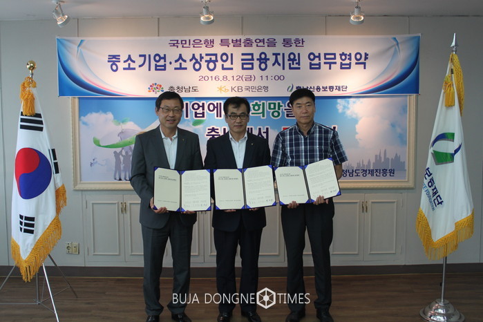 [충남=부자동네타임즈 이현석 기자] 충남신용보증재단은 12일 충청남도 중소기업 및 소상공인의 금융지원 강화를 위하여 충청남도, 국민은행, 충남신용보증재단 3자간 업무협약을 체결하였다고 밝혔다.