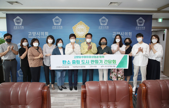 [부자동네타임즈 김인수기자] 고양시의회 이길용 의장이 6월 29일 의장실에서 고양파주아이쿱생협(이사장 김민아) 회원들과 탄소 중립 도시 만들기 간담회를 가졌다.