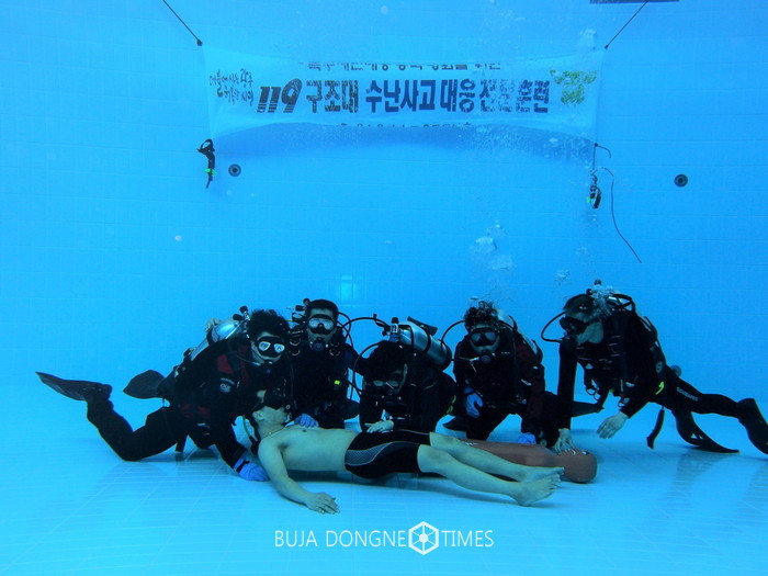 이번 훈련은 119구조대원의 스킨 스쿠버 장비를 이용한 수중 적응과 인명구조 훈련, 구조작업 중 발생할 수 있는 돌발 상황 대응 등 현장중심으로 진행됐다.