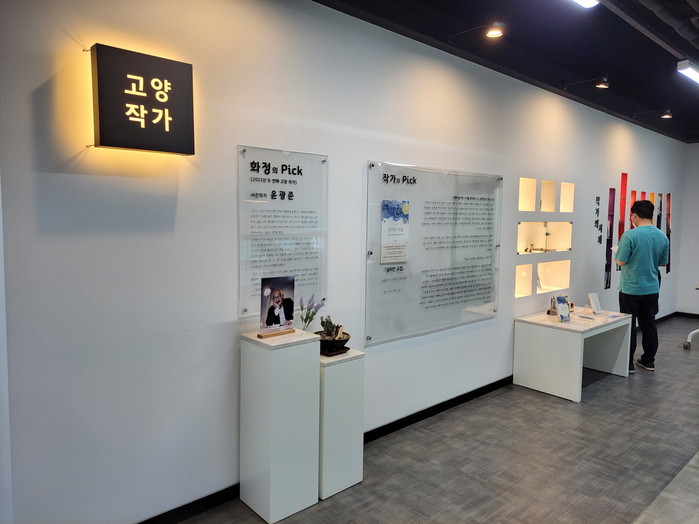 ‘고양작가서가’는 분기별로 고양시에 거주하는 작가를 선정해 작가에 대한 소개와 함께 작가의 저서 및 소장품을 전시하는 코너이다.