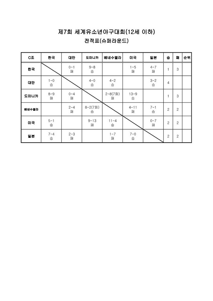 현재, 대만이 4승으로 단독 선두를 달리고 있고, 일본, 미국, 베네수엘라가 2승 2패, 한국과 도미니카가 1승 3패를 기록하고 있다.