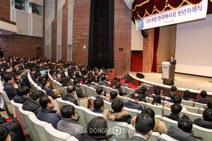 [부자동네타임즈 심동윤 기자]한국마사회(회장 김낙순)는 3일(목) 한국마사회 본관 문화공감홀에서 2019년 새해를 맞이하는 시무식 행사를 개최했다. 이날 행사에는 김낙순 한국마사회장과 임직원 500여명이 한 자리에 모였다.