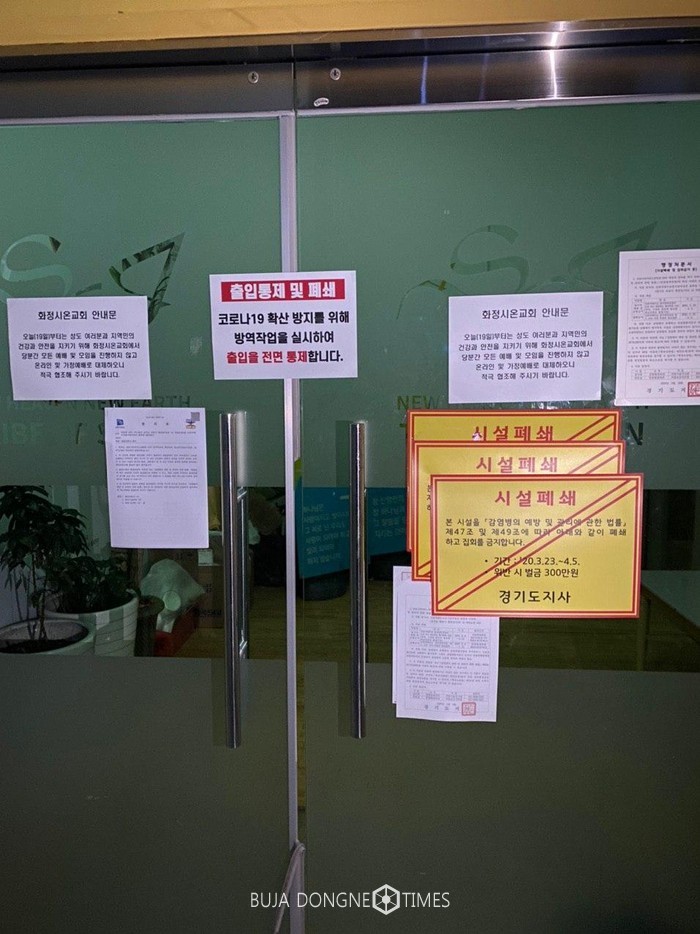 경기도 고양시는 지난 23일 브리핑에서 코로나19 확산 방지차 신천지 화정교회 관련 시설물 폐쇄에 대해 이날부터 다음달 5일까지 2주간 연장을 결정했다. 폐쇄 연장은 이번이 세 번째다.