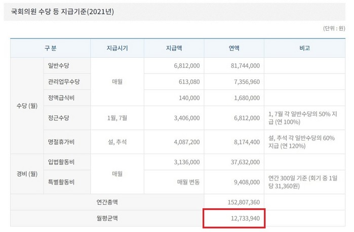현재 우리나라 국회의원들이 받고 있는 혜택은 다음과 같다(2020년 기준).