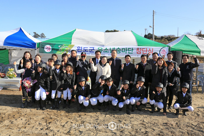 [부자동네타임즈 손권일 기자]완도군(군수 신우철)은 지난달 30일 군외면 불목리 완도승마클럽에서 유소년 승마단 창단식을 가졌다. 유소년 승마단은 조막래 단장을 대표로 하여 청해초등학교 11명의 선수를 최석봉 감독이 이끈다.