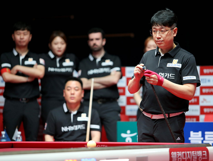 NH농협카드는 경기서 이번시즌 첫 호흡임에도 ‘최강 남자 복식’으로 등극한 조재호-오성욱이 첫 세트부터 단 4이닝만에 승리를 따내며 기분 좋게 출발했다. 조재호가 3이닝서 하이런 7점을 몰아치는 등 8득점을 올렸고, 오성욱이 남은 3점을 채워 11:5로 기선을 제압했다.