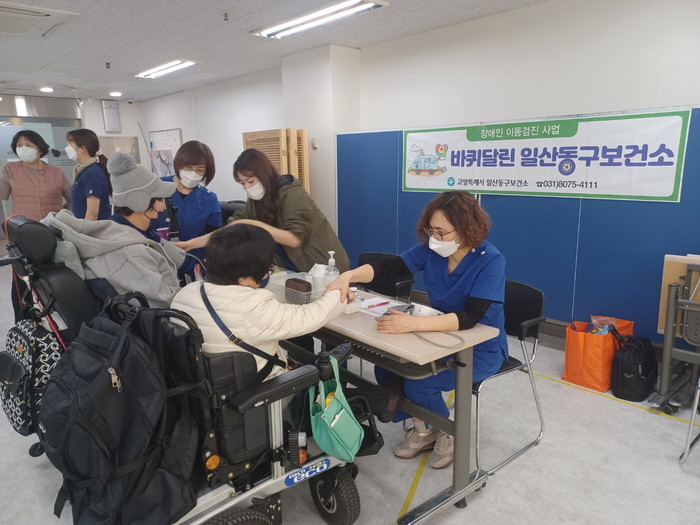 바퀴달린 일산동구보건소는 간호사, 치과위생사, 작업치료사로 이루어진 전문인력이 관내 장애인 복지시설로 찾아가는 건강검진 프로그램이다.
