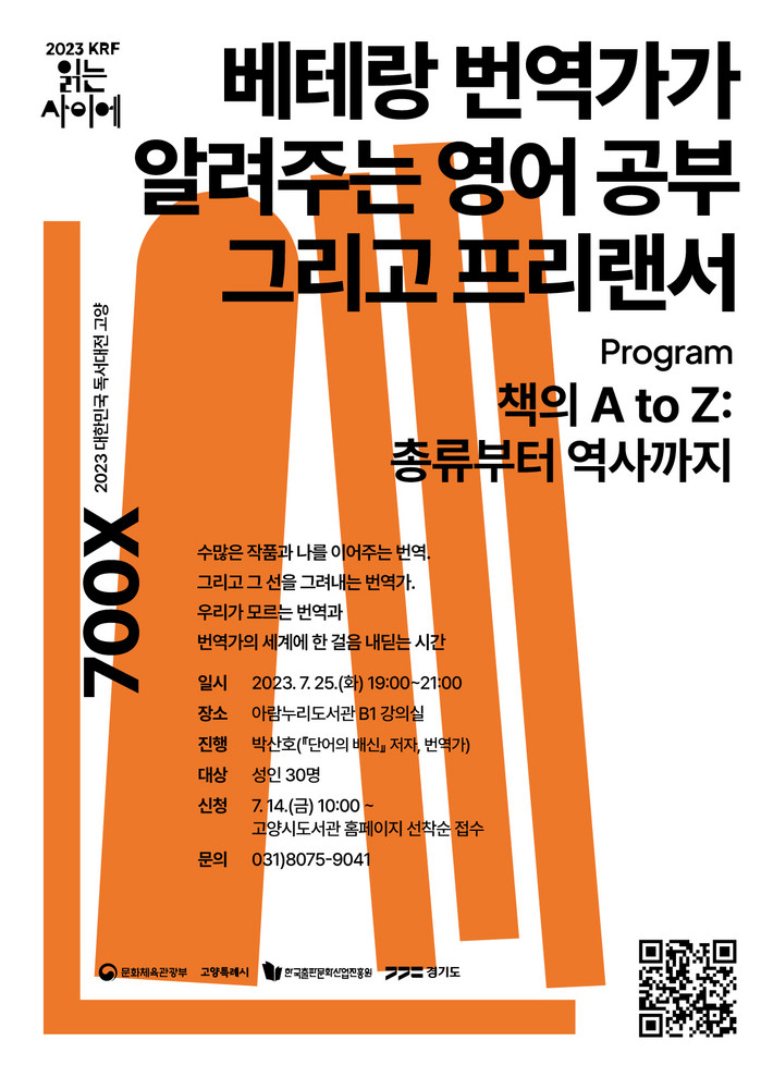 [부자동네타임즈 김인수기자] 아람누리도서관은 오는 25일 저녁 7시에 박산호 번역가를 초청해 ‘베테랑 번역가가 알려주는 영어공부 그리고 프리랜서’ 강연을 운영한다.