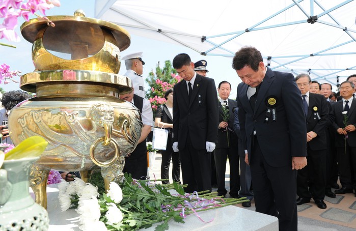 [광주=부자동네타임즈 손권일 기자] 윤장현 광주광역시장이 18일 오전 국립현충원에서 열린 김대중 전 대통령 서거6주기 추모식에 헌화하고 있다.