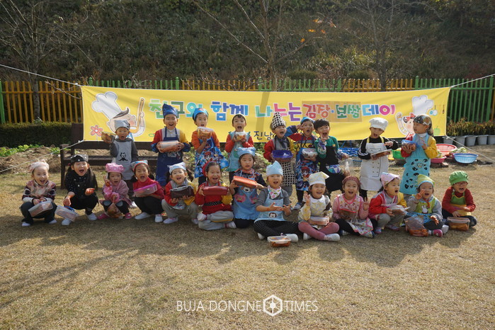 | △진남유치원은 직접 물주고 기른 배추를 수확하여 유아들이 김치를 담구고 나누는 '친구와 함께 나누는 김장&보쌈데이' 행사가 있었다. |