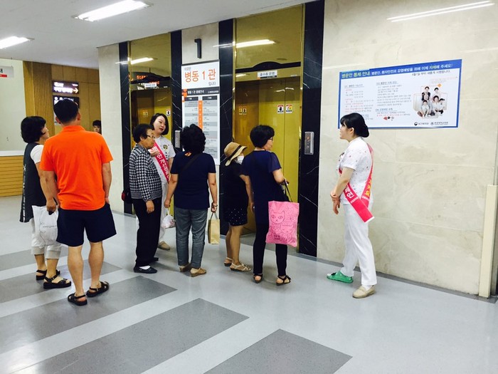 매일 오전 10시부터 12시까지 환자 및 보호자, 병문안객이 가장 많이 이동하는 엘리베이터 앞과 응급센터 출입문을 중심으로 직원들이 직접 병문안 문화 개선 내용들을 전파해 나가기로 한 것이다.