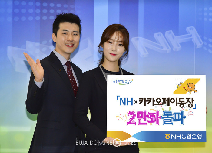 [부자동네타임즈 이현재 기자]NH농협은행(은행장 이경섭)은 11월 23일 출시된『NH x 카카오페이 통장』이 출시된 지 열엿새 째인 지난 8일 가입 건수 2만좌를 돌파했다고 10일 밝혔다.