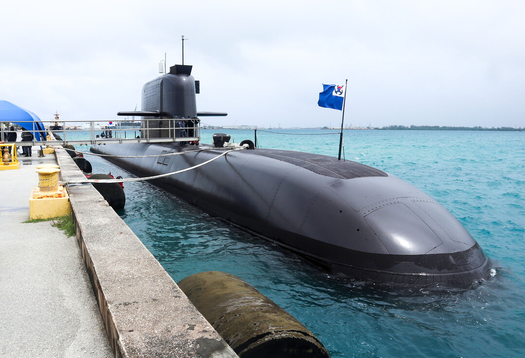 [부자동네타임즈 = 조영재 기자] 한국ㆍ캐나다 해군 연합협력훈련 참가를 위해 지난달 25일 진해군항을 출항한 도산안창호함이 캐나다로 이동 중 군수적재를 위해 7일(현지시간) 미국 괌 해군기지에 입항해 있다. 2026.4.8 [해군 제공]