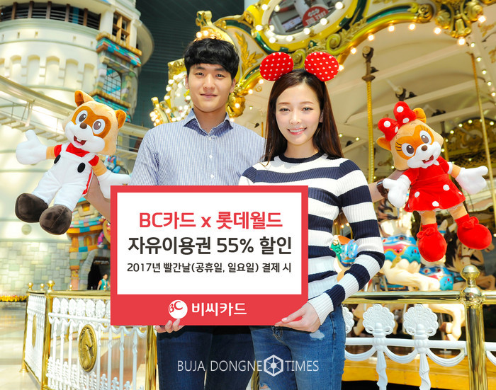 [부자동네타임즈 이현재 기자]BC카드가 연말까지 롯데월드 자유 이용권을 55% 할인된 가격에 제공하는 이벤트를 진행한다고 6일 밝혔다.