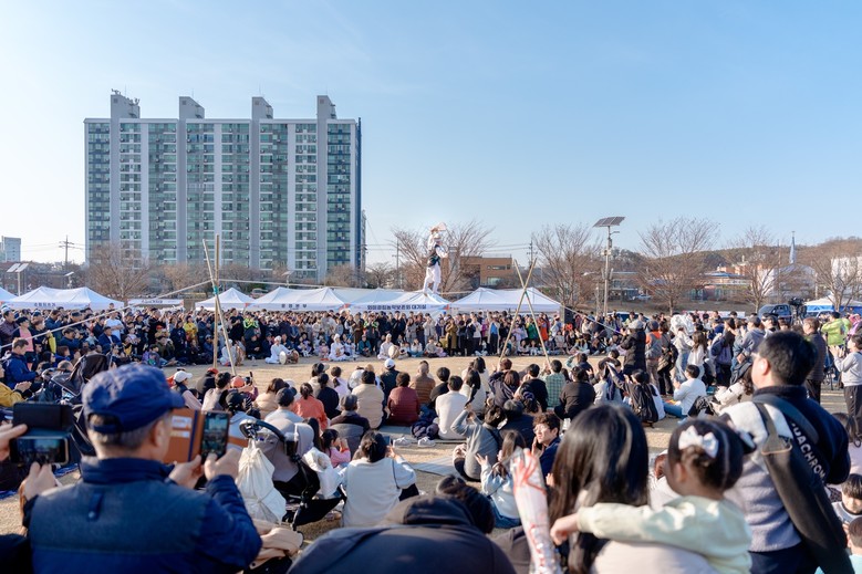 행사장에서는 대형 윷놀이와 LED 쥐불놀이, 연 만들기, 소원지 쓰기 등 남녀노소 누구나 참여할 수 있는 전통 민속 체험이 진행됐다. 특히 줄타기 공연과 연날리기보존회의 긴 연날리기 시연이 이어지며 시민들의 큰 관심을 모았다.