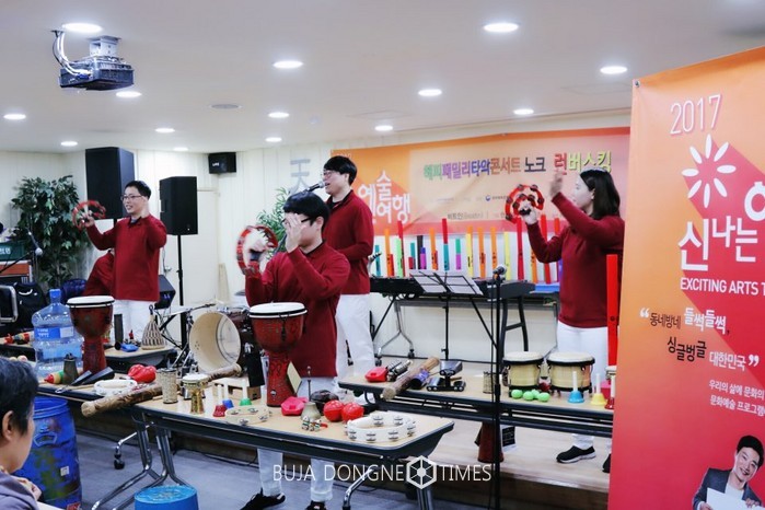국내 인기 타악창작그룹의 레전드 '발광(發光) & 딱따구리음악회'를 보유하고 있는 공연제작사 비트인예술단(공동대표 한상현 임준식)은 지난 12월 8일 서울시 노원구에 있는 ‘천애재활원’에서 ‘해피패밀리타악콘서트 노크, 런버스킹’을 개최했다.