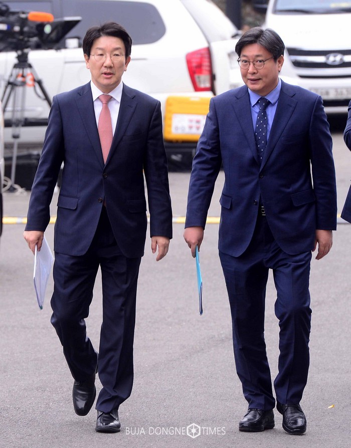 권성동 국회 탄핵소추위원장과 이춘석 위원이 5일 서울 종로구 헌법재판소에서 열린 박근혜 대통령 탄핵심판 사건의 2차 변론 참석을 위해 대심판정으로 들어서고 있다. 2017.01.05