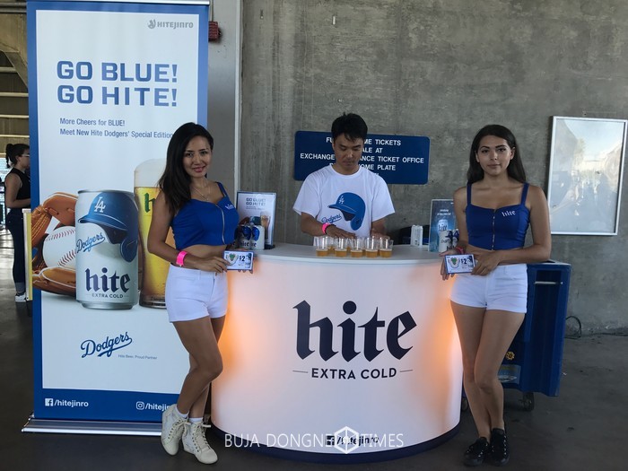 교민뿐만 아니라 현지인 시장 공략을 위해 LA다저스와 제휴를 맺고 올 상반기에 일명 ‘다저스맥주(New Dodgers hite)’를 출시해 인기를 얻고 있다. 또, LA다저스 구장에 LED 광고진행하고 구장 내에 ‘하이트 바(hite bar)’를 운영· 시음행사 등으로 브랜드 알리기에 나서고 있다.