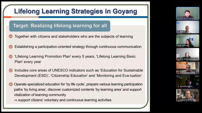 고양시는 지속가능발전교육(ESD) 및 시민사회의 교육계획·관리 참여 경험과 관련해 지역 수준에서 계획하고 실행하는 이니셔티브, 모니터링과 평가를 위해 마련한 메커니즘, 어떤 이해관계자가 어떻게 관련되어 있는지 등의 사례를 공유했다.