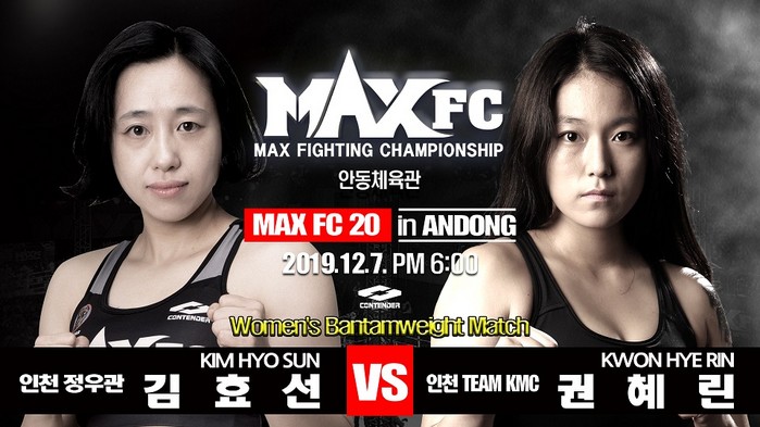 한편 MAX FC 20은 12월 7일 경상북도 안동시 안동체육관에서 개최되며, TV스포츠채널 IB 스포츠와 네이버 스포츠TV를 통해 오후 6시부터 생중계된다.
