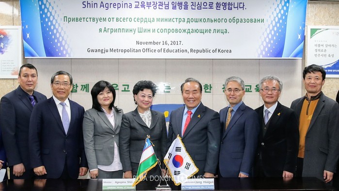 우즈베키스탄 Shin Agrepina 교육부장관을 비롯한 우즈베키스탄 교육계 인사 3명이 16일 광주시교육청을 방문해 양국 교육교류 추진을 협의했다.