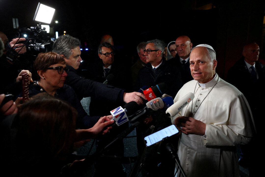 취재진 만난 교황 레오 14세