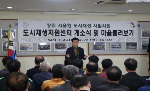 [부자동네타임즈 김정태 기자] 서울시의회 이승로 의원(새정연ㆍ성북4)은 지난 19일 장위1동 주민센터에서 열린 ‘도시재생지원센터 개소식 및 마을 둘러보기’ 행사에 참여해 “서울시가 적극적으로 추진하는 새로운 패러다임의 도시재생사업이 장위동에서 첫 시동을 걸게 되었다”며 “최고의 사례가 될 수 있도록 민·관과 함께 노력해나갈 것”이라고 말했다.