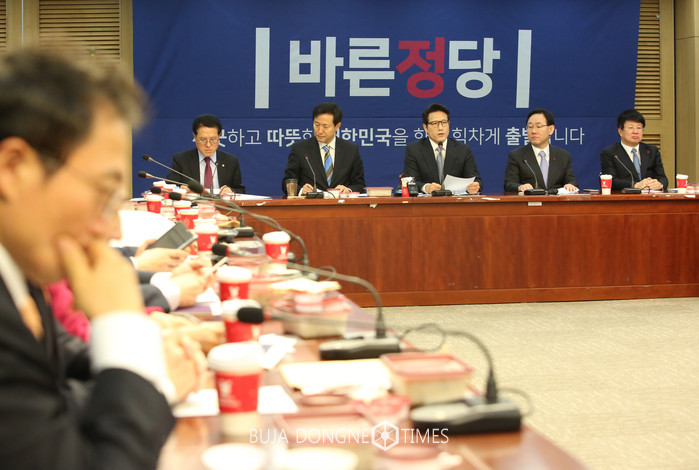 정병국 바른정당 창당준비위원장 비롯한 의원들이 9일 오전 서울 여의도 국회 의원회관에서 전체회의 및 정책의총를 하고 있다. 사진 뒷줄 왼쪽부터 정운천 의원, 오세훈 전 의원, 정병국 창당준비위원장, 주호영 원내대표, 이종구 정책위의장. 2017.01.09.