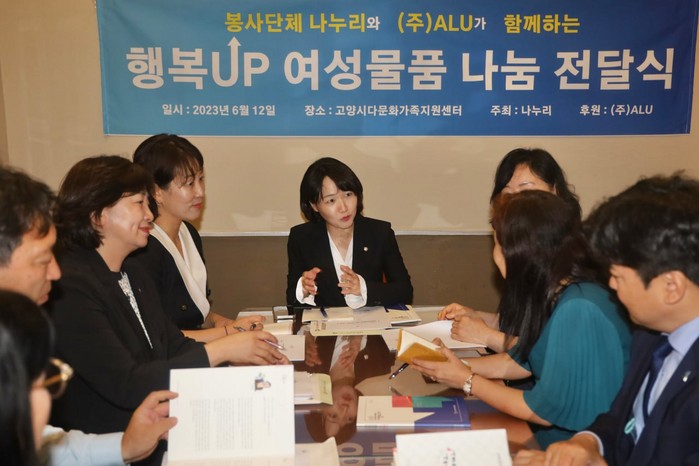 [부자동네타임즈 김인수기자] 고양시 봉사단체 ‘나누리’와 (주)ALU(에이엘유)가 12일 다문화가족, 여성청소년 등 취약계층 여성들에게 여성물품을 전달하고, 홍정민 국회의원(더불어민주당, 경기 고양병)과 함께 간담회를 가졌다.