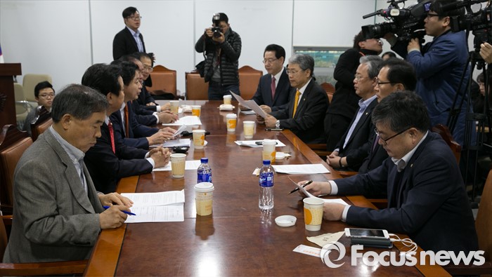(서울=포커스뉴스) 8일 오전 서울 여의도 국회 의원회관에서 열린 야권 대통합 등 논의를 위한 구당(救黨)모임에 참석한 의원들이 논의를 하고 있다. 이날 모임에는 김동철, 김영록, 김영환, 노웅래, 문병호, 오제세, 유성엽, 장병완, 최원식, 황주홍 의원 등이 참석했다.
