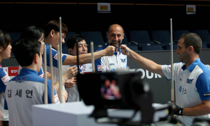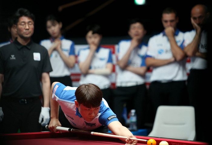 그러나 3세트서 산체스가 팔라존을 15:12(10이닝)로 제압하면서 에스와이의 기세가 올라섰다. 이어 4세트 이영훈과 한슬기가 최성원 김세연을 상대로 4이닝만에 9:3으로 승리를 거두며 승부를 원점으로 돌렸다. 5세트서는 즈엉 아잉 부(베트남)가 세미 사이그너(튀르키예)를 11:2(4이닝)로 돌려세우면서 세트스코어 3:2 에스와이가 승리까지 한 세트만 남겨두게 됐다.