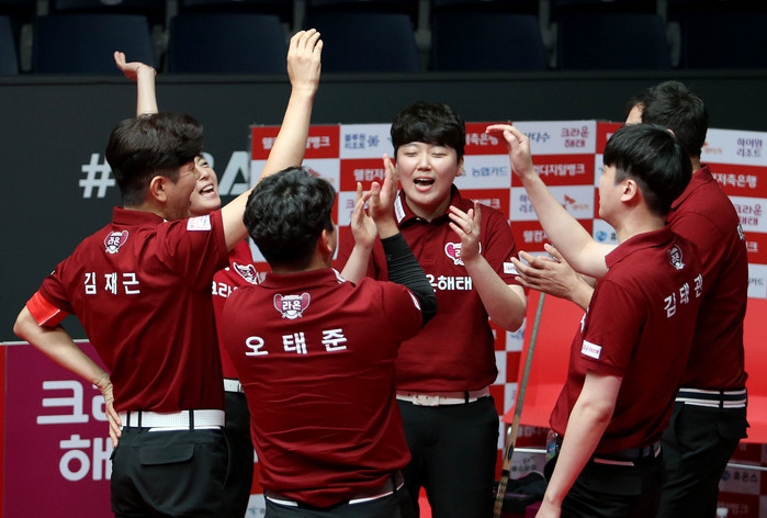 NH농협카드는 첫 세트 조재호와 오성욱이 에디 레펜스(벨기에)-응오 딘 나이(베트남)를 11:8(6이닝)로 승리한 것을 시작으로 2세트 김보미-김민아가 강지은과 히다 오리에(일본)을 9:4(10이닝), 3세트서 조재호가 강동궁을 15:11(5이닝)로 물리치며 승기를 잡았다. 여세를 몰아 4세트에 나선 김현우와 김민아가 조건휘와 히다를 9:3(9이닝)으로 꺾고 세트스코어 4:0 완승을 거뒀다.
