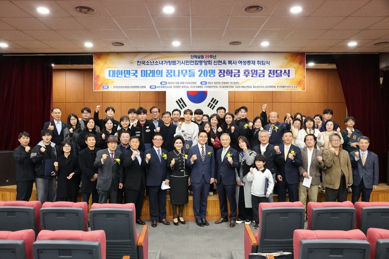 어렵고 힘든 경제 상황 속에서도 대한민국의 미래를 향한 헌신과 노력은 계속되고 있다. 우리 대한민국 어린 새싹들을 보호하고 격려하는 2025년 3분기 전국소년소녀가장돕기시민연합 중앙회(김성욱 총재, 신현옥 목사 여성 총재)의 장학금 수여식이 30일 오후 강남구 삼성2동 주민센터 7층 대강당에서 개최되었다.