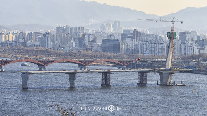 또, PSC 거더는 하부지지를 위한 가시설 설치가 불가한 한강 상 교하공간을 확보하기 위해 특수장비인 이동식 작업차(Form Traveler)를 이용해 거더 양쪽의 균형을 잡아가면서 교량을 이어 나가는 FCM(Free Cantilever Method)공법이 적용되었다.