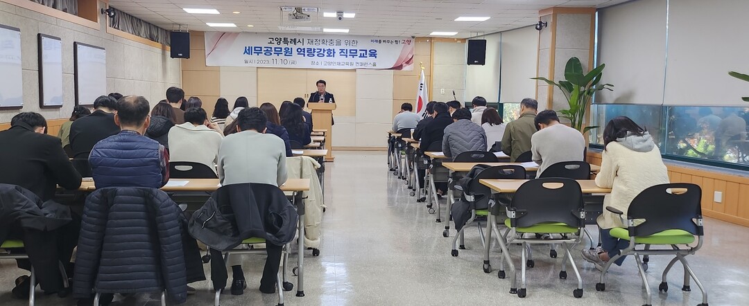 [부자동네타임즈 = 김인수 기자] 지난 10일 본청과 구청 지방세 담당공무원 50명이 참석한 가운데 고양인재교육원에서 ‘고양특례시 재정확충을 위한 세무공무원 역량강화 직무교육’을 실시했다.