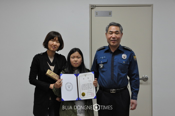 광주서부결찰서(서장 이유진)는 광주광역시 서구 유촌초등학교 4학년에 재학중인 정예원학생이 '17년 3월 15일 21:48경 서구 쌍촌동 미소그랑빌 2층에서 화재가 발생한 것을 발견하고 신고하여 인명피해를 예방하여 표창을 수여하였다.