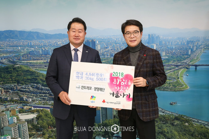 [부자동네타임즈 이병도 기자]성동구(구청장 정원오)는 지난 5일 (주)신도리코.상영재단에서 성동구 어려운 이웃에 성금 4,840만원과 백미 20kg 500포를 기탁했다고 밝혔다.