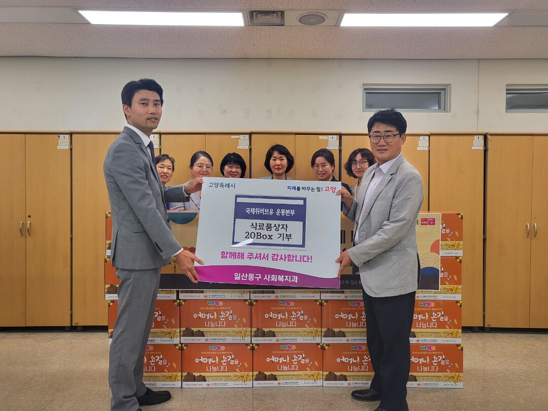[부자동네타임즈 = 김인수 기자] 고양특례시 일산동구는 지난 11일 ‘고양난다(복지나눔 1촌맺기)’사업의 일환으로 (사)국제위러브유운동본부(이하 위러브유)‘고양장항지부’로부터 이웃과 함께 나누는 풍성한 추석을 위한 식료품 20상자(100만원 상당)을 기탁 받았다고 밝혔다.