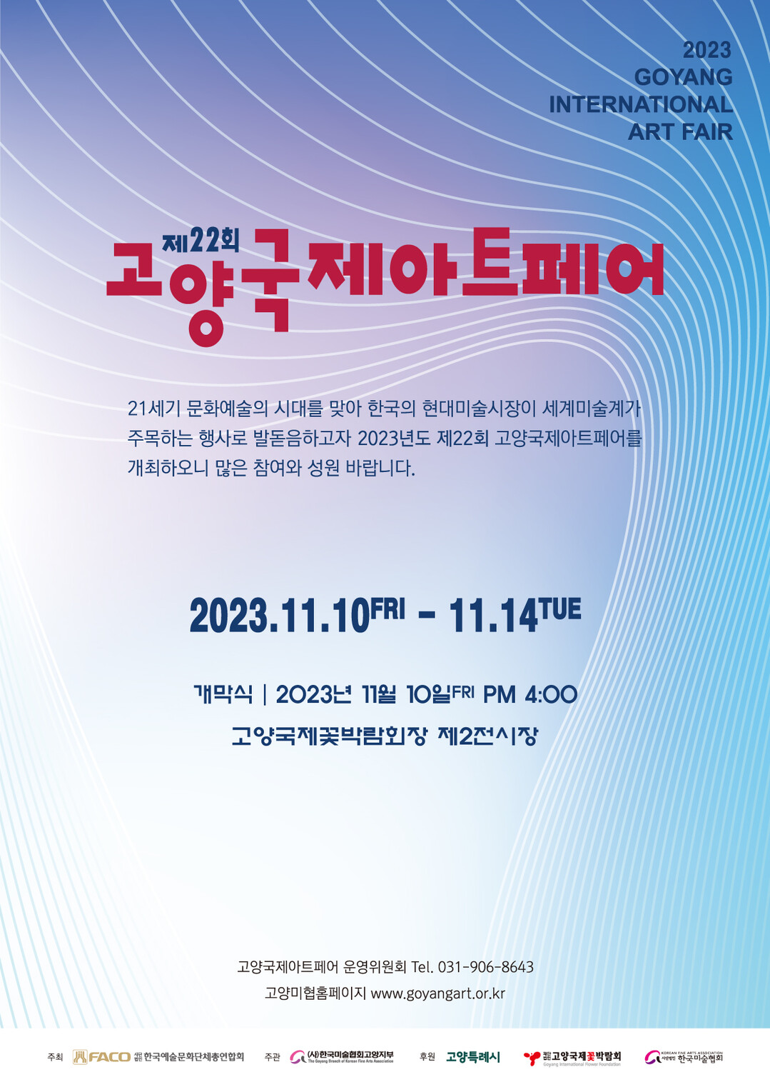 고양 미술인의 축제인 제22회 고양 국제 아트 페어에는 해외작가, 원로 작가, 중견 작가, 청년 작가 등 다수의 고양 미술인이 참가할 예정이다.