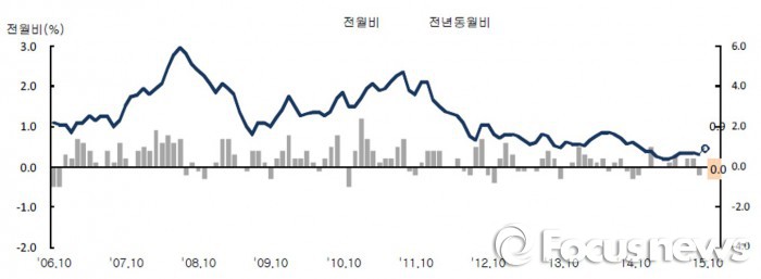 (서울=포커스뉴스) 소비자물가 상승률이 11개월 연속 0%대를 기록했다.