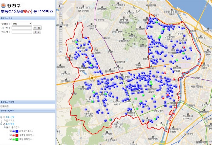 더불어 관내에는 영어, 중국어, 일어가 가능한 글로벌 중개사무소와 마을공인중개사, 무료중개서비스를 제공하는 중개업소 등 나눔을 실천하고 있는 ‘나눔 공인중개사’가 130여 곳에 이른다. 구는 창의 행정의 일환으로 ‘나눔 공인중개사’에 대한 정보를 공유할 수 있도록 양천구청 홈페이지에 시각화된 플랫폼을 구축하여 운영하고 있다.