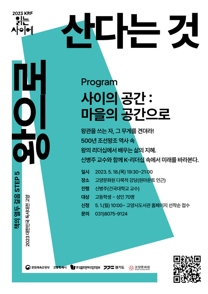 이동환 고양특례시장은 “2023 대한민국 독서대전에서 준비한 다채로운 인문학 강연을 통해 시민들이 인문학적 소양을 쌓고 삶의 가치를 새롭게 찾길 바란다. 독서대전을 계기로 지역의 독서문화 저변을 확대하고 건강한 독서생태계를 구축해 시민들의 삶이 풍요로워질 수 있도록 노력하겠다.”고 말했다.