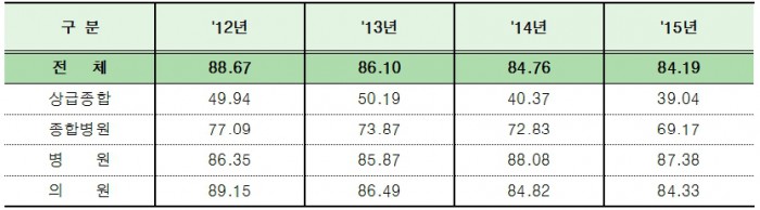 16일 건강보험심사평가원(원장 손명세, 이하 ‘심사평가원’)이 발표한 ‘2015년 유소아 급성중이염 항생제 적정성 평가’ 결과에 따르면 유소아 급성중이염 항생제 처방률은 84.19%로 최초 평가(2012년 88.67%)에 비해 감소 추세이다.