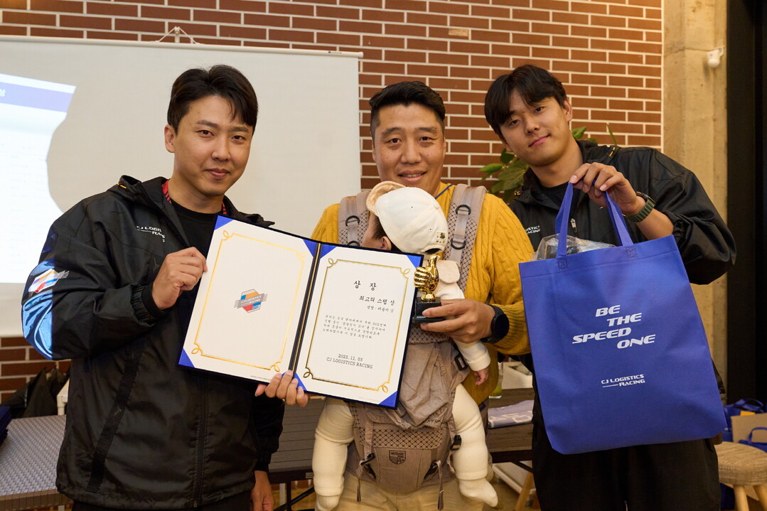 CJ로지스틱스 레이싱은 지난 3일 공식 팬클럽 ‘스피드 원(SPEED ONE)’ 멤버 30여명을 초청한 가운데 창단 두번째 팬미팅 ‘MEET THE FAN in 용인’ 행사를 진행했다고 밝혔다. 2023 CJ대한통운 슈퍼레이스 챔피언십 최종전을 치르기 전 용인 에버랜드 스피드웨이 인근 카페에서 열린 팬미팅에는 CJ로지스틱스 레이싱 오한솔, 박준서 드라이버를 비롯, 이정웅 감독과 미케닉 등 팀 전원이 참석해 한 시즌 동안 응원해준 팬들에게 감사 인사를 전했다.