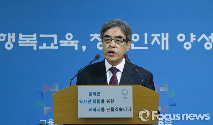 | △ 2016학년도 대학수학능력시험이 치뤄진 12일 오전 세종시 정부세종청사 교육부 공용브리핑룸에서 이준식 출제위원장이 수능 출제 기본방향에 대한 설명을 히고 있다. 올해 수능은 교과과정의 내용과 수준에 맞게 출제하였으며 국어 영역과 영어 영역은 출제범위를 바탕으로 다양한 소재의 지문과 자료를 활용, 전년과 같은 출제 기조를 유지했다고 밝혔다. <사진제공=포커스뉴스> |