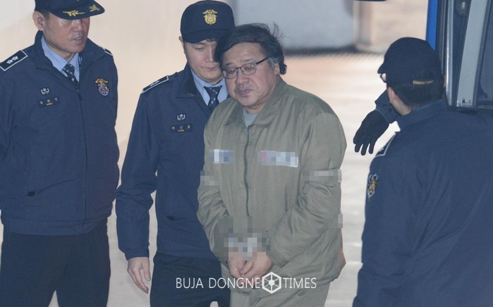 안종범 전 청와대 경제수석이 6일 오전 서울 서초구 서울중앙지법에서 열린 9차 공판에 출석하기 위해 호송 차량에서 내려 법정으로 향하고 있다. 2017.02.06.