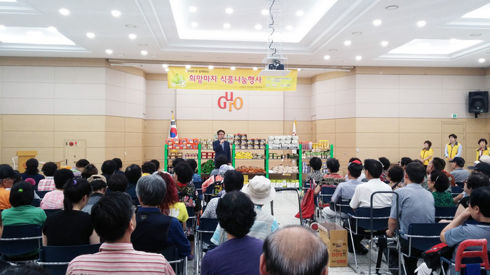 ‘희망마차 식품나눔’은 법적지원의 테두리에서 벗어난 취약계층에게 도움을 주기 위해 식료품을 지원해 주는 행사다.